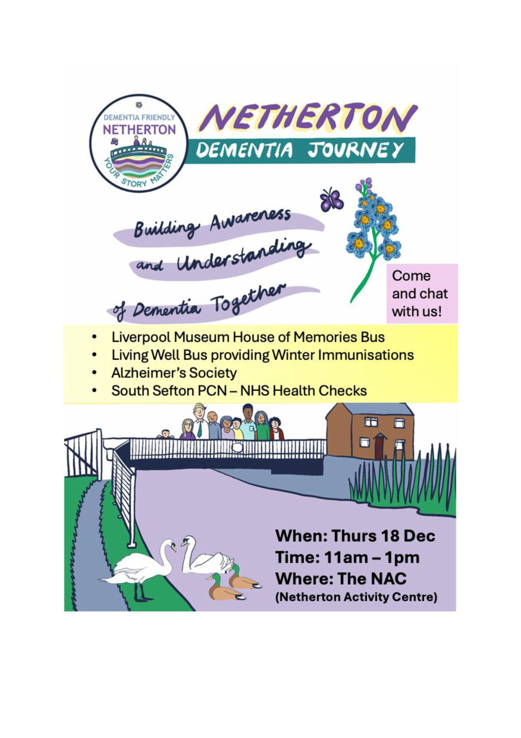 12th December 2025 Dementia Friendly Netherton Event – 18th December 2025 Latest Posts9th JanuaryTake on a Charity Challenge for us in 2026!Read More14th DecemberLive Music Now Project 2025Read More17th DecemberHappy Birthday Eileen - celebrating 100 years!Read More