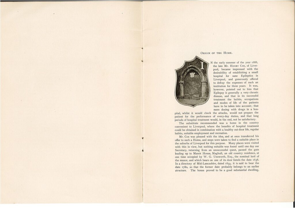 We were delighted to be sent a copy of a book dating back to 1899, detailing the first 10 years of ‘Maghull Homes’ – ‘The First Epileptic Home in England’, which later became Parkhaven Trust.