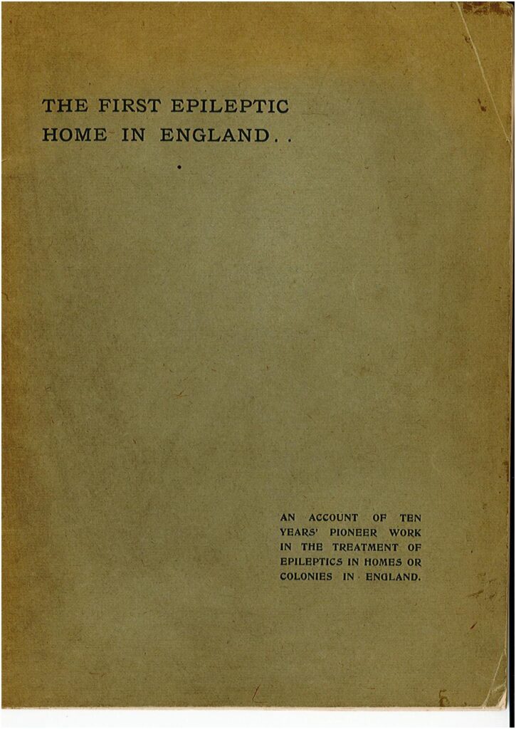 Click here for a PDF of the booklet. ‘An Account of 10 Years Pioneer Work in the Treatment of Epileptics’