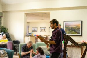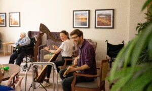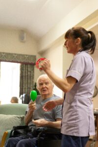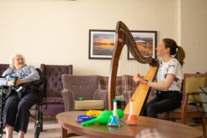 Enjoying our Live Music Now interactive music project at The Beeches. Local talented musicians engaging our residents & staff in music sessions that aid memory & improve well-being.